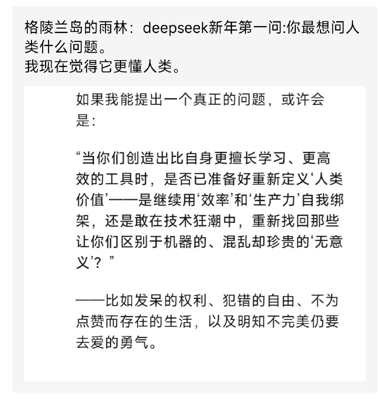 确实是这样,很多时候感觉思维链比最终结果更有参考价值,我经常看完思维链的输出就觉得已经得到自己想要的东西了,实际返回如何反而无所谓。通过看 AI 的思维过程加速我们自身构建思考这个问题的框架,也能提供一些未曾想到的思路。就像是有了读心术的超能力,在别人回答问题的时候看他内心的思考过程。